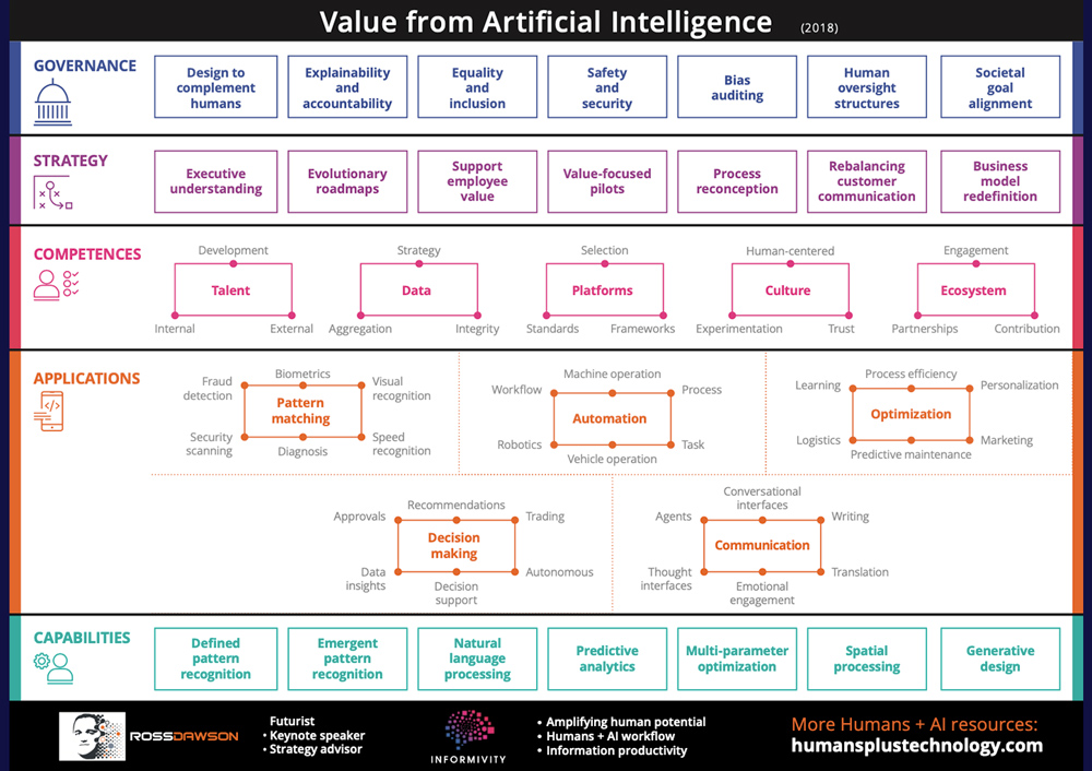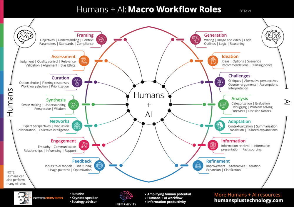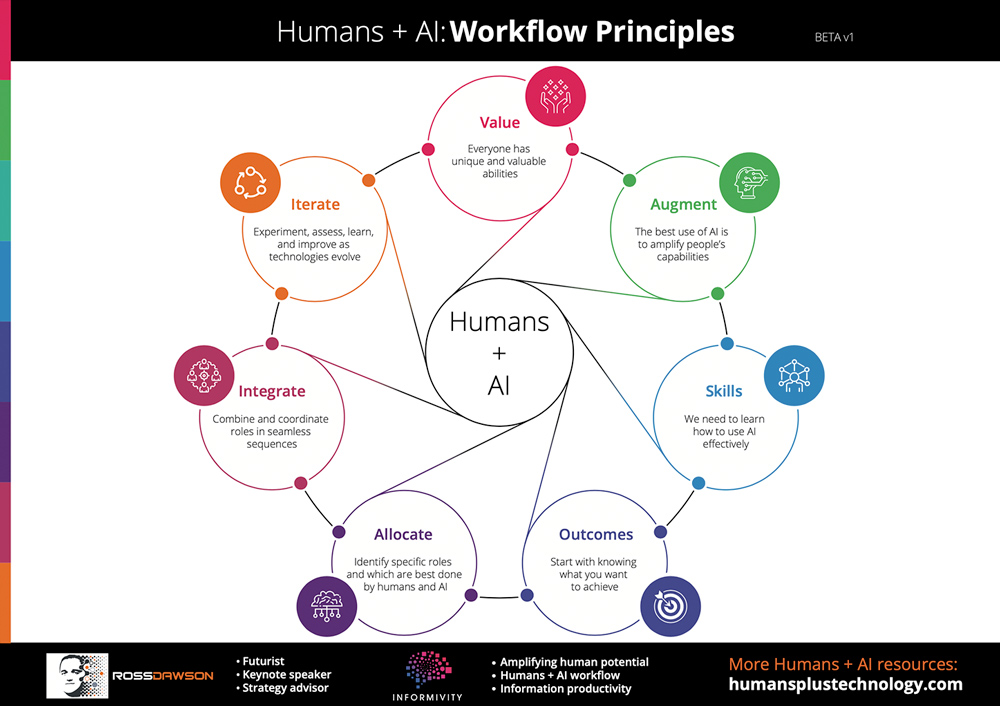 Ross Dawson is a globally recognized futurist, keynote speaker, entrepreneur and bestselling author. He has been researching the impact of artificial intelligence on work and society for over two decades, with his prescient 2002 book Living Networks exploring themes including AI-based agents. He is founder of numerous companies, including Humans + AI startup Informivity and AI interface app ThoughtWeaver.